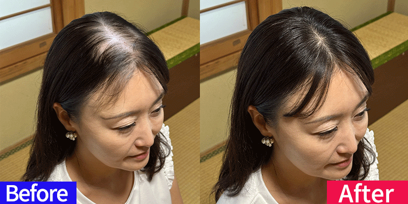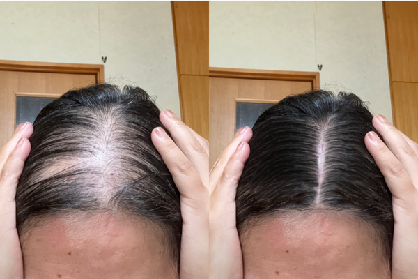 薄毛が気になったくらいから旦那とのレスに悩んでいたのですが、リリィジュを使ってからみるみる生え際びっしりになっていって、旦那にも褒めてもらいました💕